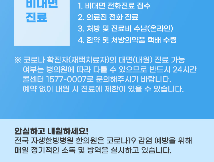 코로나 회복 클리닉 / 진료대상 - 코로나 후유증이 장기간 지속되거나 확진 후 빠른 회복을 원하시는 분 - 기침, 가래, 호흡곤란 등 호흡기 증상 - 두통, 어지럼증, 수면장애 - 만성피로, 무기력 - 집중력 저하, 기억력 감퇴, 우울감 등 / 후각 및 미각 이상 / 피부발진, 생리불순, 설기능저하, 탈모 등