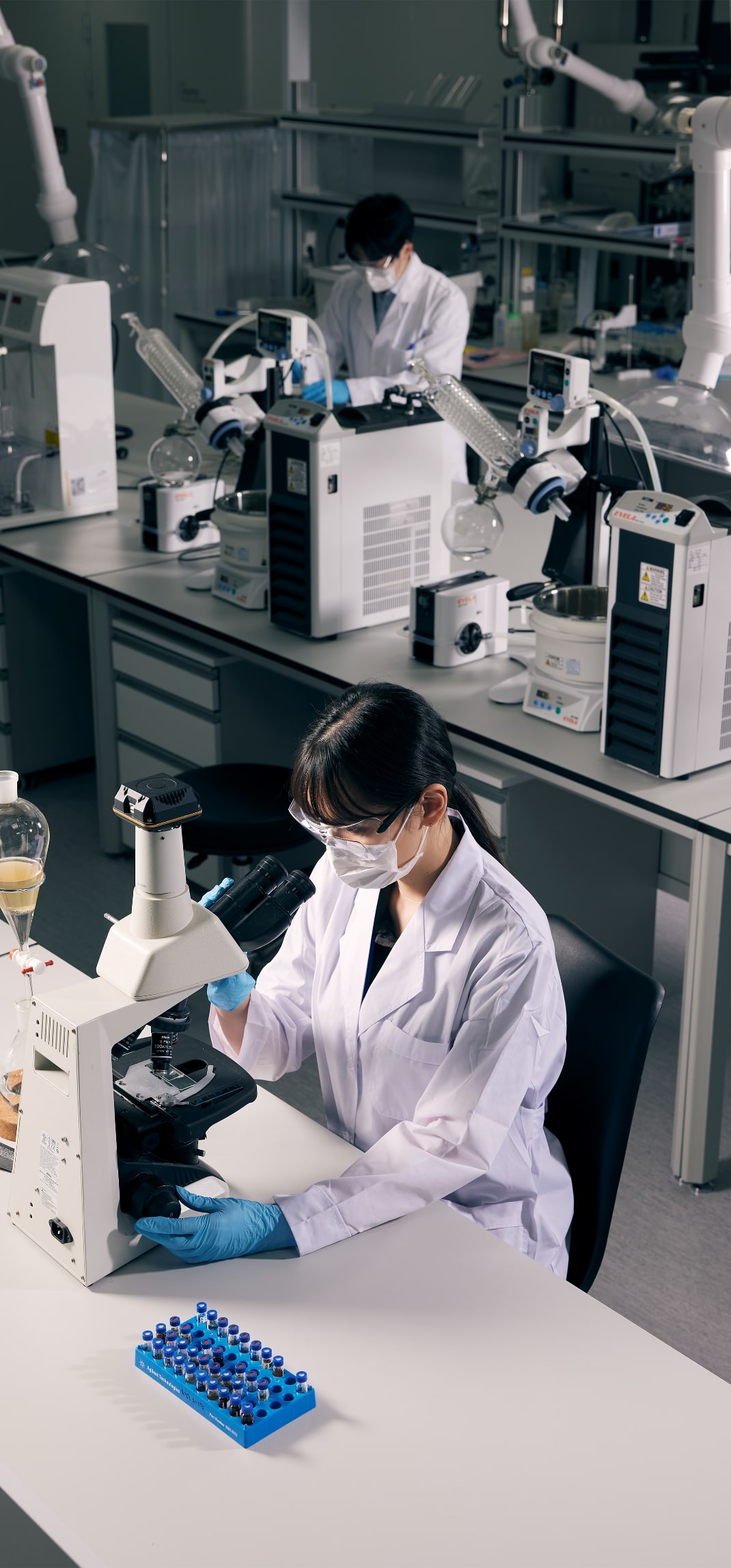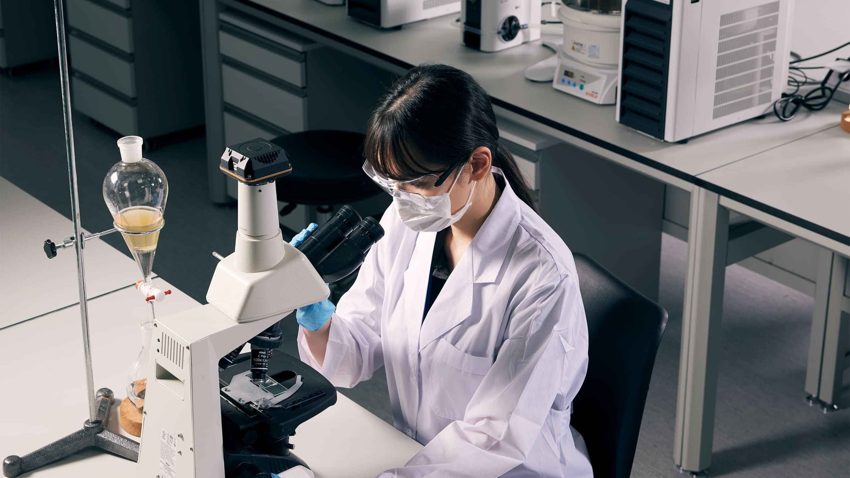 연구자가 실험 도구를 다루는 연구실 장면
